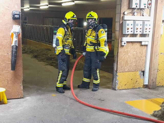 Das Wohnhaus ist bewohnt, eine Person wird vermisst und muss geborgen werden, im Stall